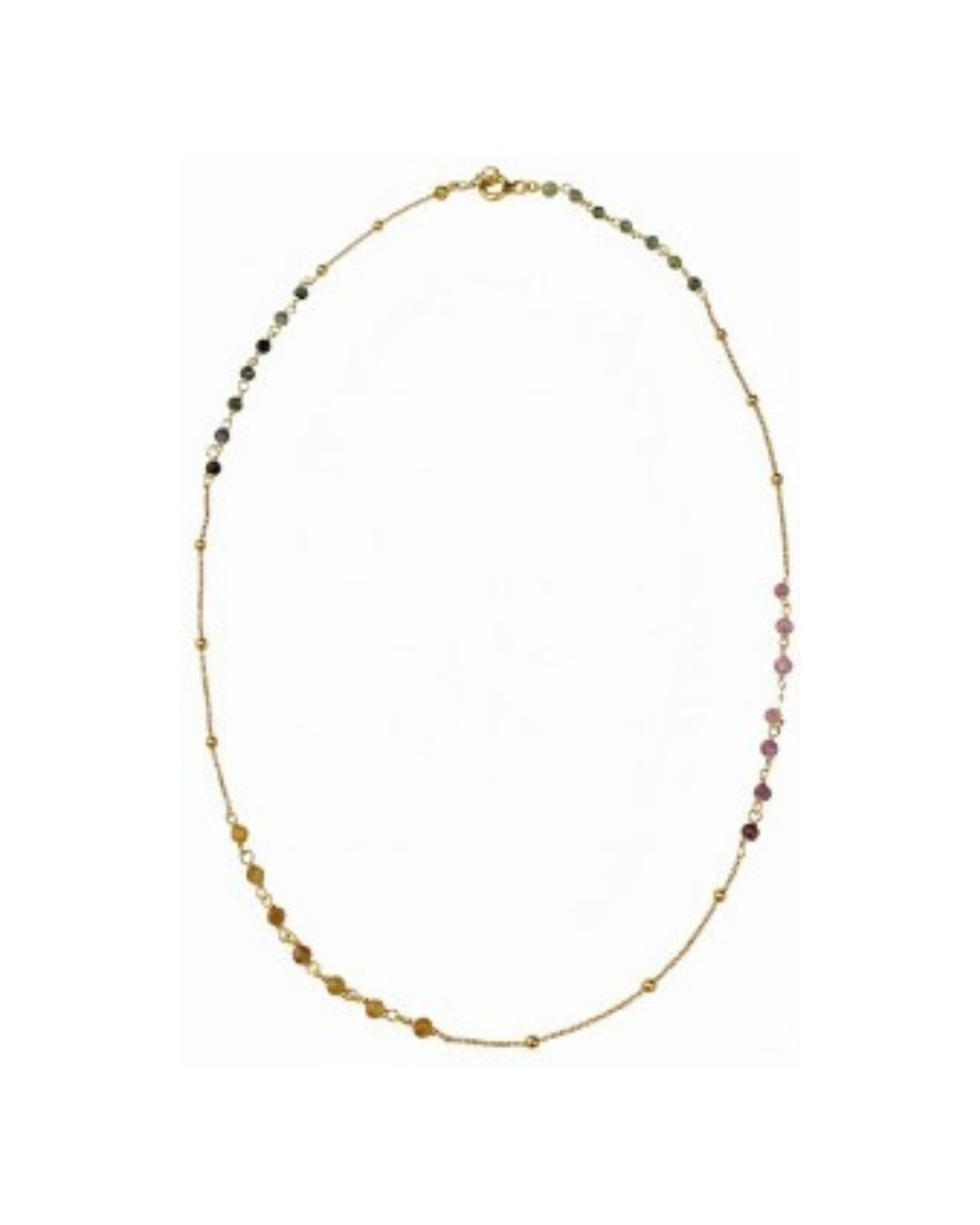 Este colar é uma celebração da diversidade da natureza, capturando o espetáculo de cores das Turmalinas em harmonia com o brilho atemporal da Prata 925. Cada pedra única, com sua paleta que transita entre tons suaves e intensos, conta uma história de singularidade e beleza natural.