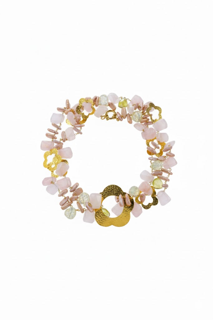 Um colar onde a sorte se encontra com a delicadeza, numa composição que exige um segundo olhar. Esta peça une o simbolismo atemporal do trevo à suavidade das pérolas e ao calor das pedras naturais, resultando numa harmonia de significados e brilho.
