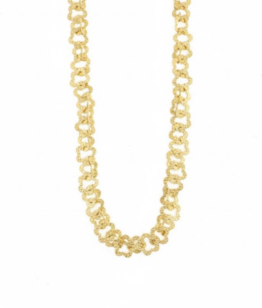 A verdadeira sofisticação está nos detalhes. O seu design único cria um efeito de brilho subtil e contínuo, oferecendo um toque de luxo sem esforço. Seja como colar ou pulseira, é a peça perfeita para quem ama um design minimalista com uma alma poética.